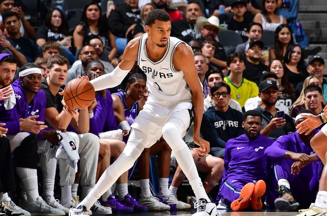 第一节马刺34-30领先4分,文班亚马开场迎着努尔基奇命中打板三分,之后突破上篮得分,首节最后40多秒,马刺新科榜眼哈珀与文班亚马完成不可思议的连线——文班刚过半场就示意哈珀空接,最终文班完成炸裂的暴扣2+1,马刺主场沸腾,但老乐福沦为背景板。