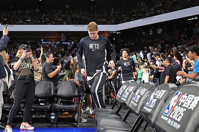 本场比赛中,篮网的替补锋线新秀丹尼-沃尔夫(Danny Wolf)的表现也算是有了一定程度的提升。沃尔夫全场出场12分钟,投篮4中3,三分线外2中2,罚球2中1,得到了9分1篮板4助攻的数据,还有2次失误,正负值为+9。沃尔夫在进攻端也算是展现出了比较全面的得分能力,他也展现出了一定的传球能力和组织能力。在手握大量球权的情况下,他还是刷出了不错的数据。不过沃尔夫在运动能力和移动速度方面的短板依然是非常明显的,他的数据也是建立在手握大量球权的基础上的。最关键的是,篮网面对的是太阳的第三阵容球员,球队当时的竞争力已经比较有限了。在这种情况下刷出不错的数据,事实上也是有些缺乏说服力的。