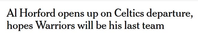 霍福德从未想过自己会离开波士顿,但如今,他希望旧金山能成为自己NBA生涯的最后一站。他知道联盟中一切皆有可能,但他坚信勇士会是自己效力的最后一支球队。